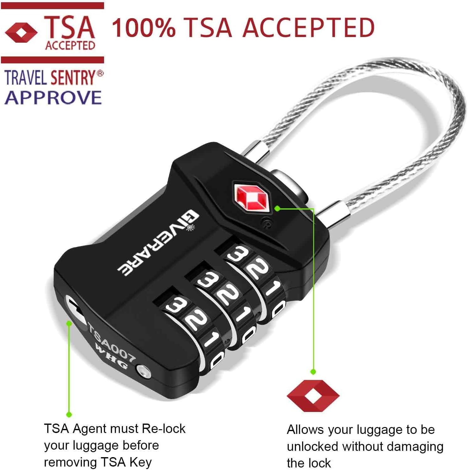 Allows TSA screeners to open, inspect and re-lock your baggage without damaging the lock in 75+ countries and regions through 750+ airports.