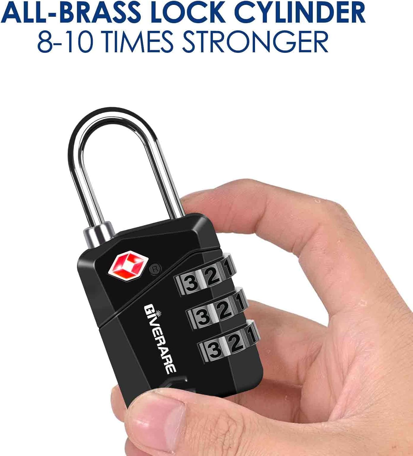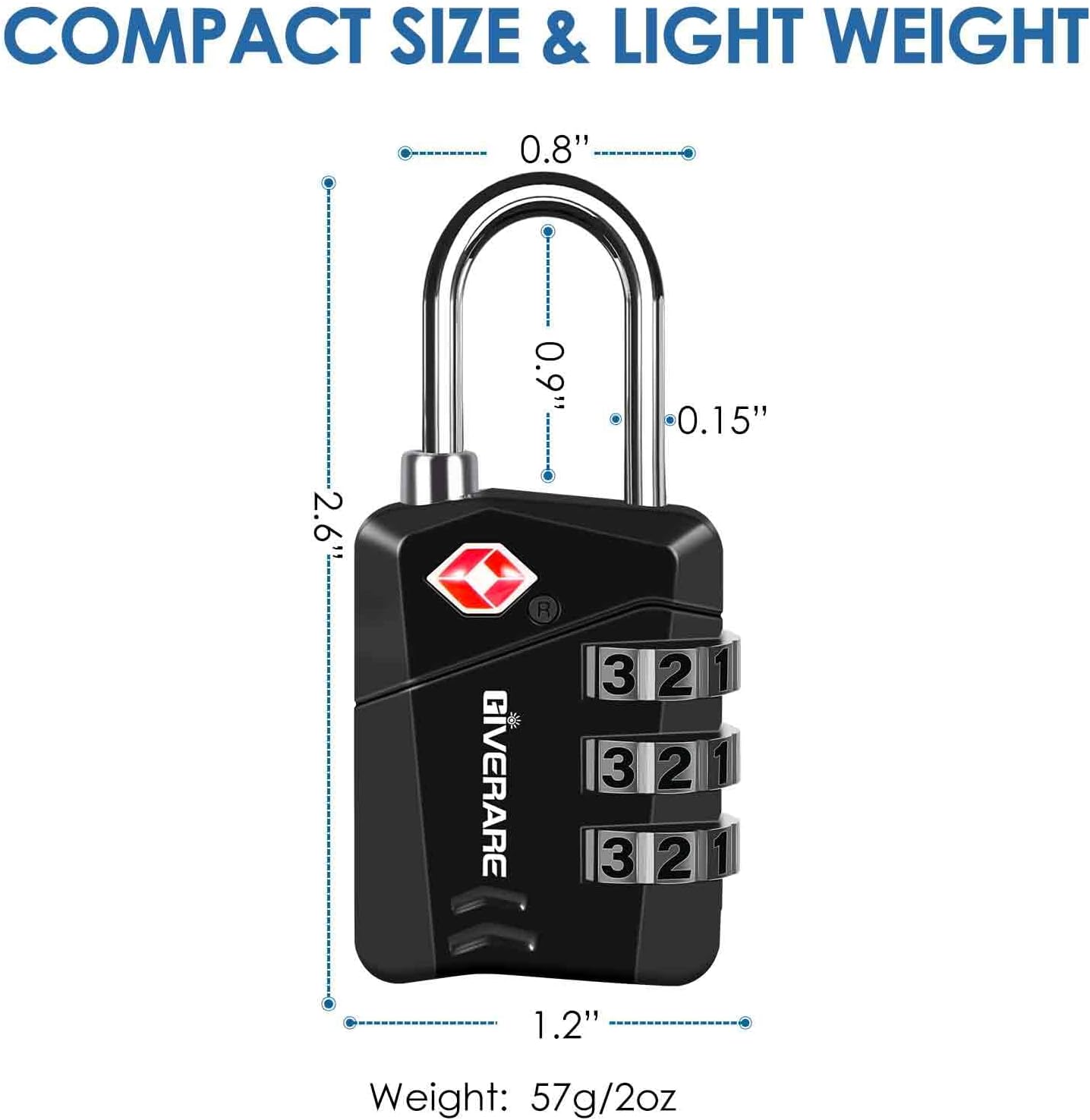2 Pack TSA Approved Travel Luggage Locks, Metal Combination Lock, Alloy Keyless 3-Digit Padlocks, TSA Accepted Compatible Padlock for Gym Locker, Golf Bag Case, Backpack, Black-by GIVERARE