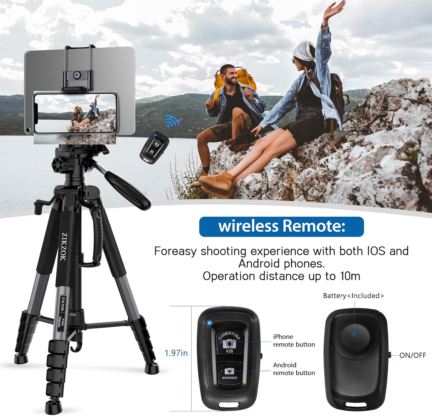 【3-in-1 Smart Travel Kit】: Ultralight 2.9lb body folds to 20.8″ with included waterproof case—smaller than a tent pole. Bonus: Bluetooth remote (10ft range) + cold shoe mount for mic/light. Perfect for hiking, backpacking, or studio work without bulk
