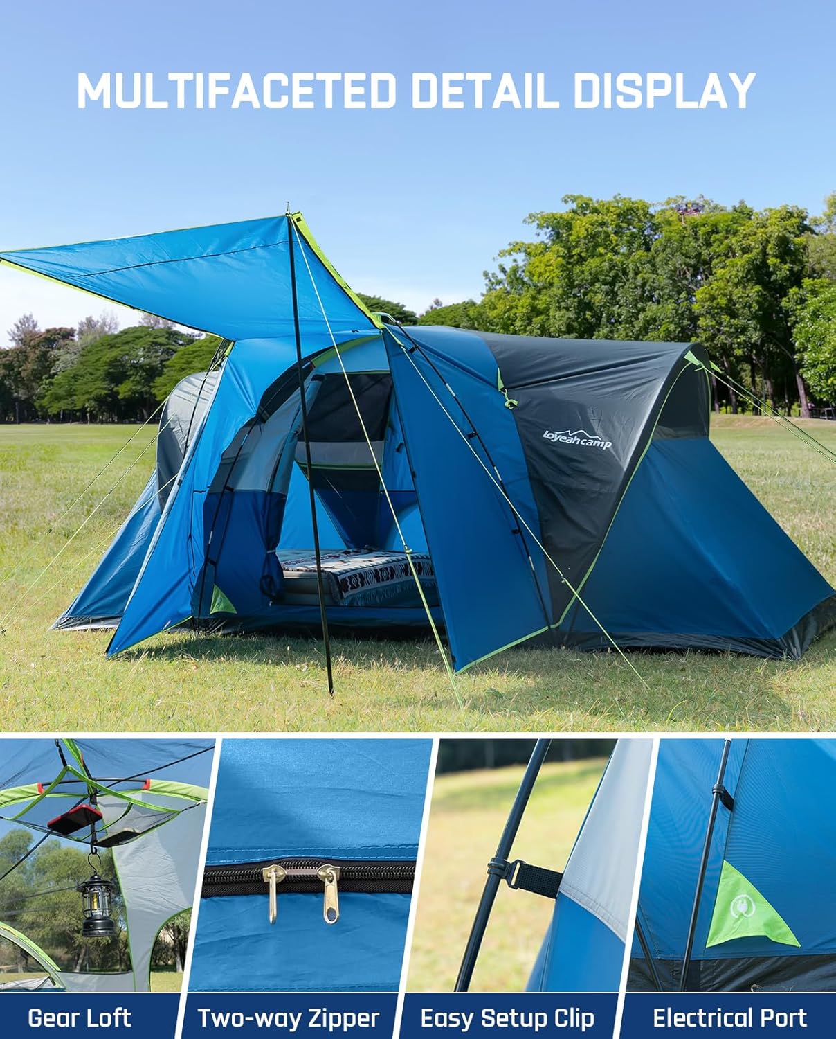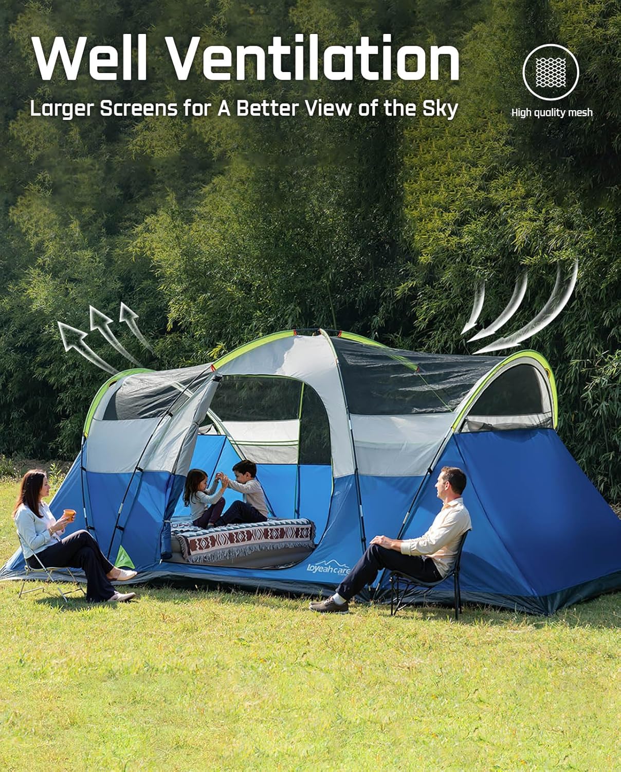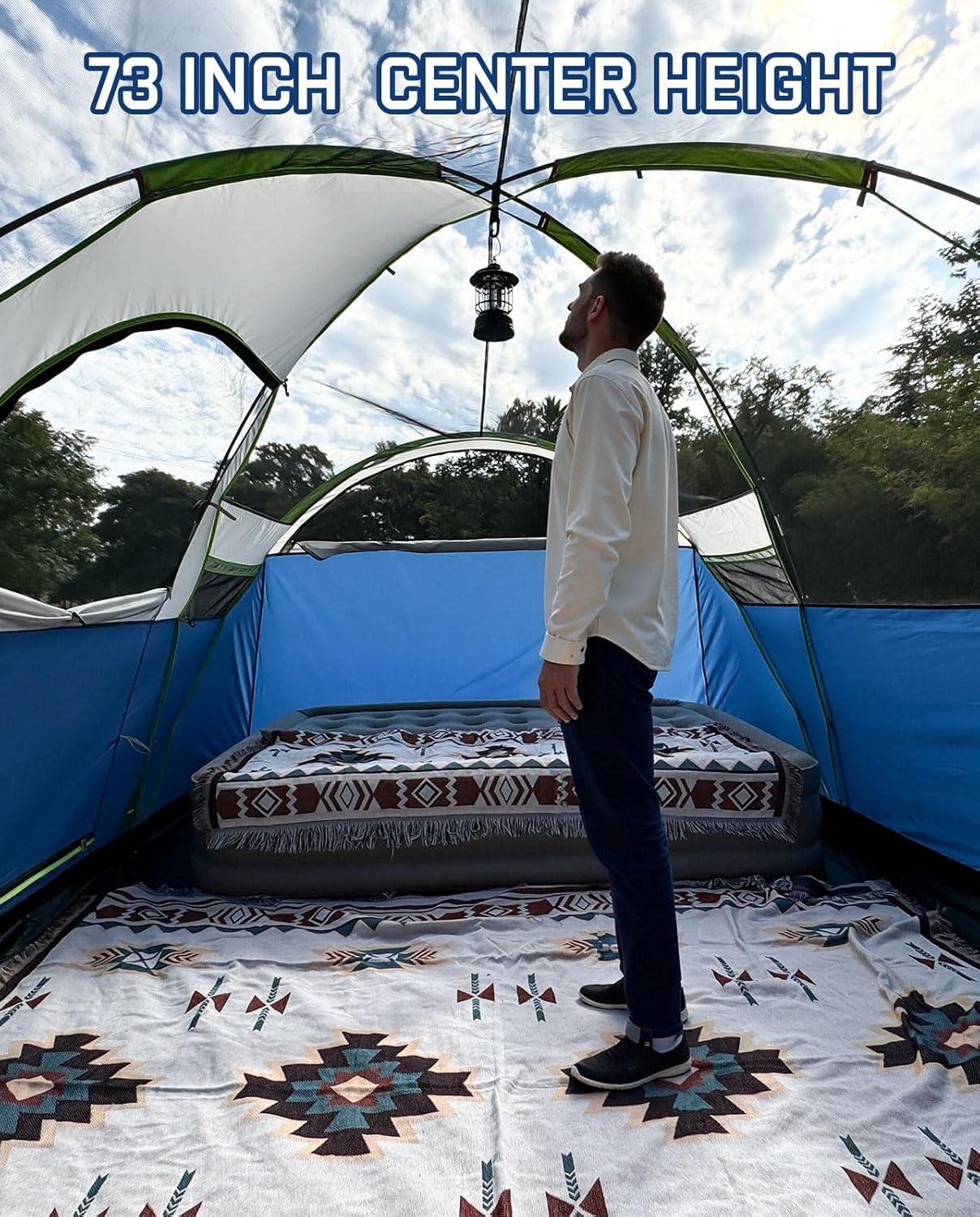 Easy Setup & Portable: This easy up instant tent with only 5 tent poles will take 2 person 10 mins to set up without any skills and also easy to disassembled, included carry bag with two handles will help you store this large tent easily and without taking much space, this big tents for outdoor camping is camping essentials for family camping&hiking, music fesitival, parties.