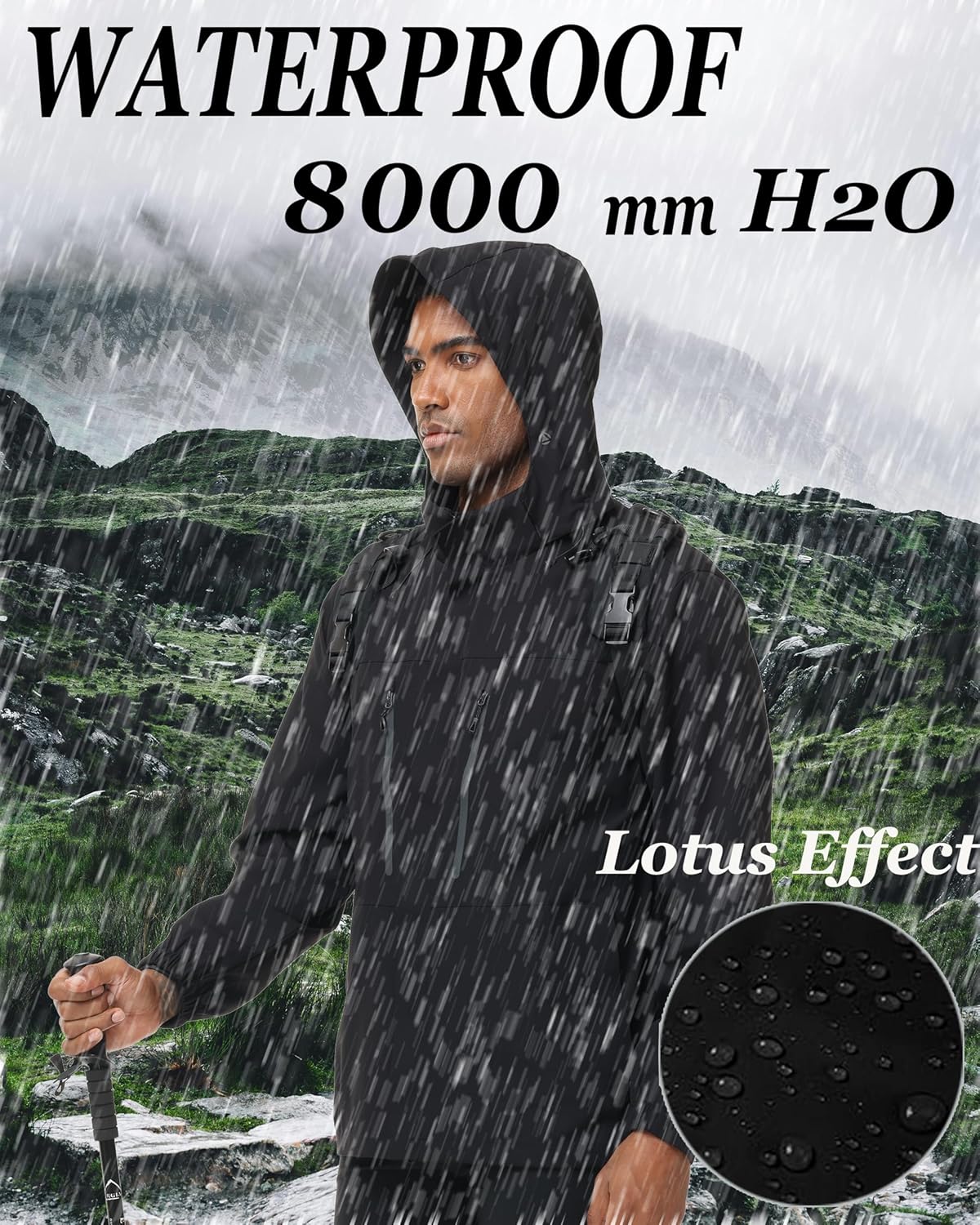 ROMANSONG Rain Jacket with 8000 mm H2O Waterproof and 3000g/m2/24hr Breathable