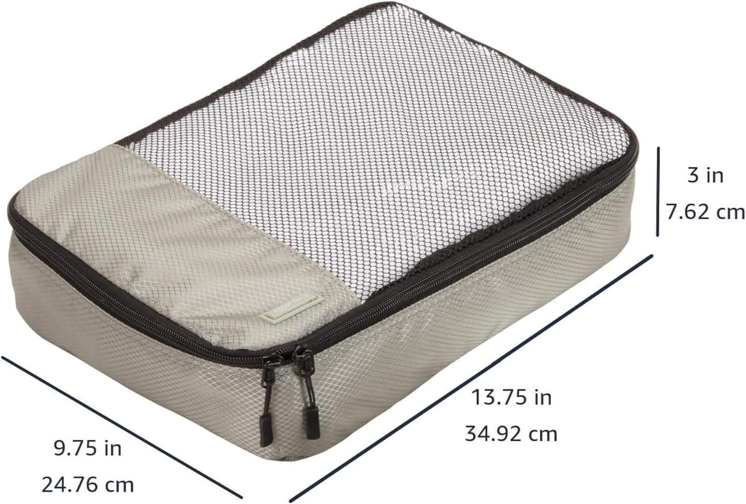 Amazon Essentials 4-Piece Packing Cubes Travel Accessories Set, Luggage Organizer with Double Zipper, Mesh Top, 100% Polyester, Medium, Gray (Previously Amazon Basics)