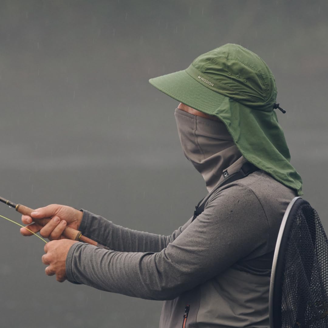 Customers find the sun hat provides excellent sun protection, covering the neck well, and appreciate its cooling properties, particularly noting how the neck covering helps prevent overheating. The hat is comfortable, lightweight with a nylon-like material, and works well for various outdoor activities including yard work and hiking. While some customers say it accommodates big heads, others find it too big.