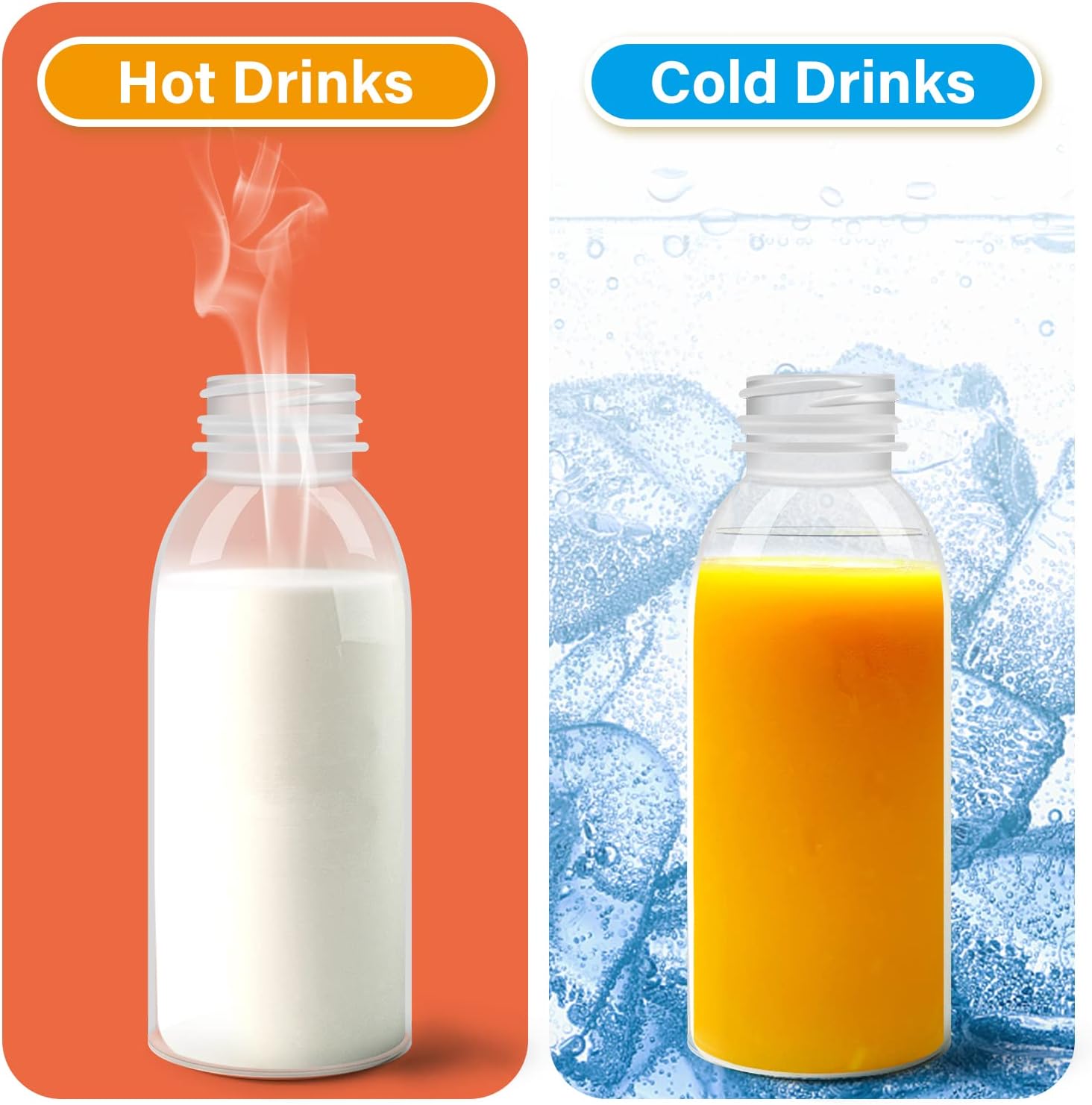 Refillable with caps lids and heat-resistant: Our bottles come with convenient caps lids, allowing you to easily refill them whenever needed. Additionally, they are heat-resistant, ensuring that you can safely enjoy your hot drinks without any concerns.