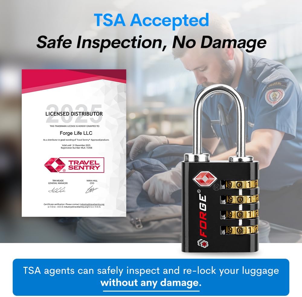 TSA Approved Luggage Locks: Forge TSA approved locks are recognized by the TSA, with two TSA logos on the front and back of the lock, making them hassle-free for airport security inspections. Forge travel locks can be used on a wide variety of items besides suitcases or luggage. These locks can be used on a toolbox, pelican case, briefcase, gym locker, purse, backpack or laptop bag.