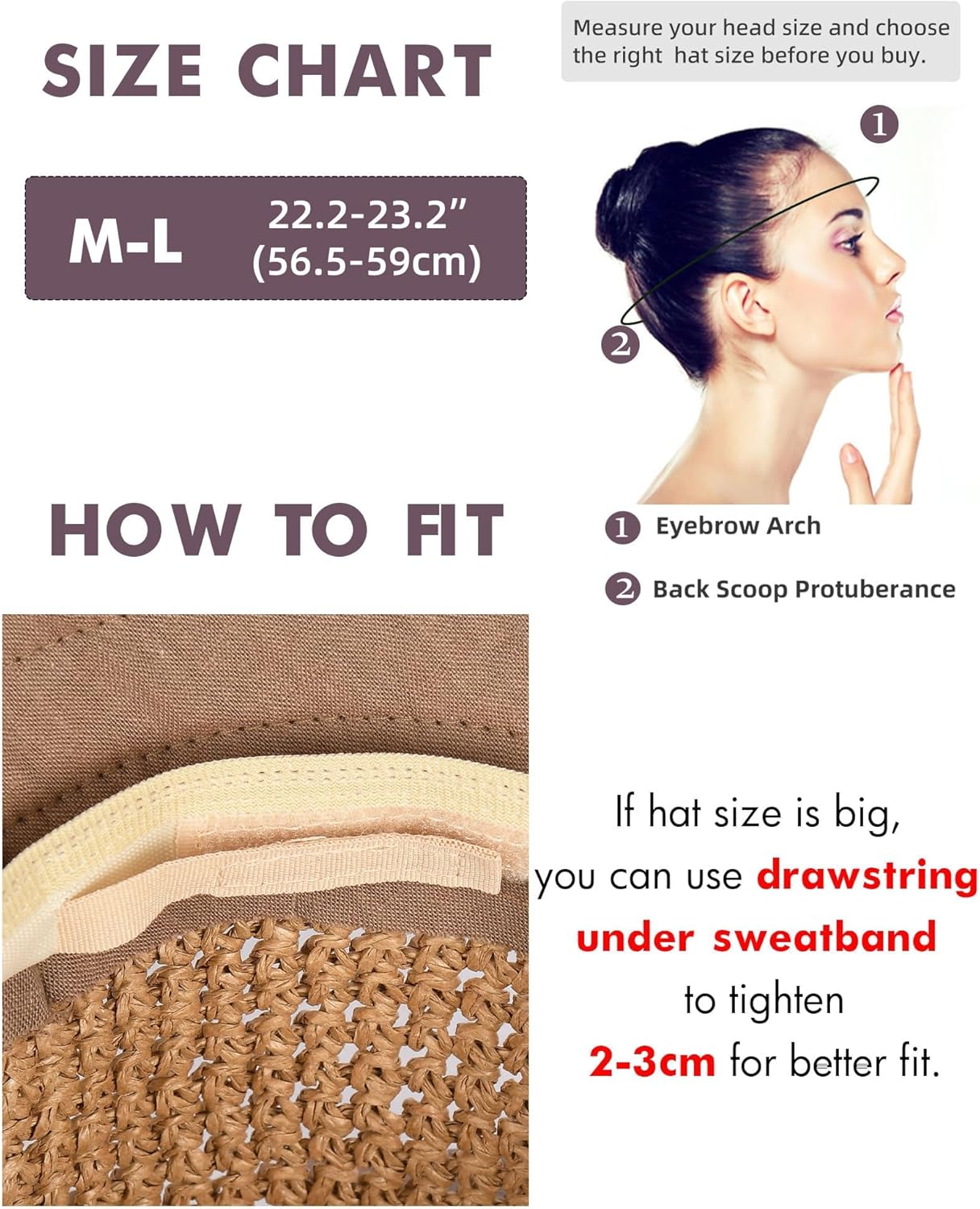 Customers find the straw hat stylish and well-made, with good sun protection that covers the whole face. The hat fits well, is packable, retains its shape, and can be adjusted, with one customer noting it’s easy to squeeze into suitcases. While some customers say the size is perfect, others find it too small.