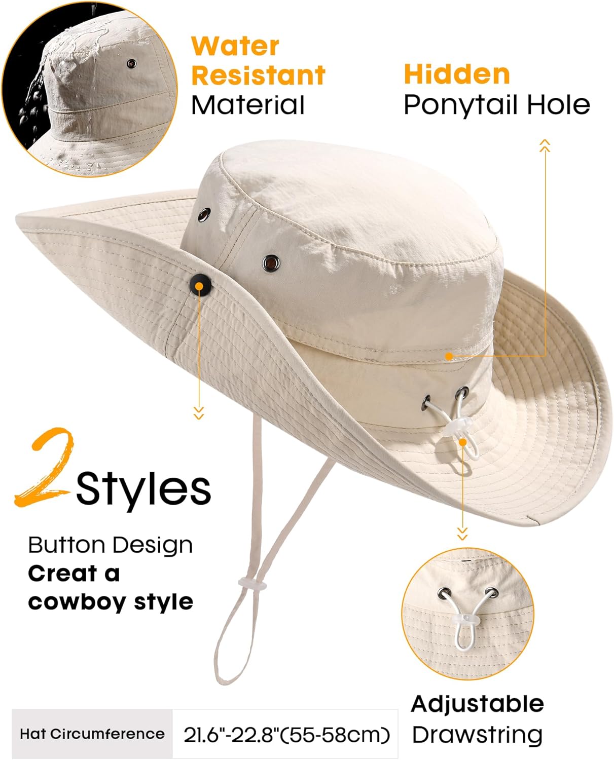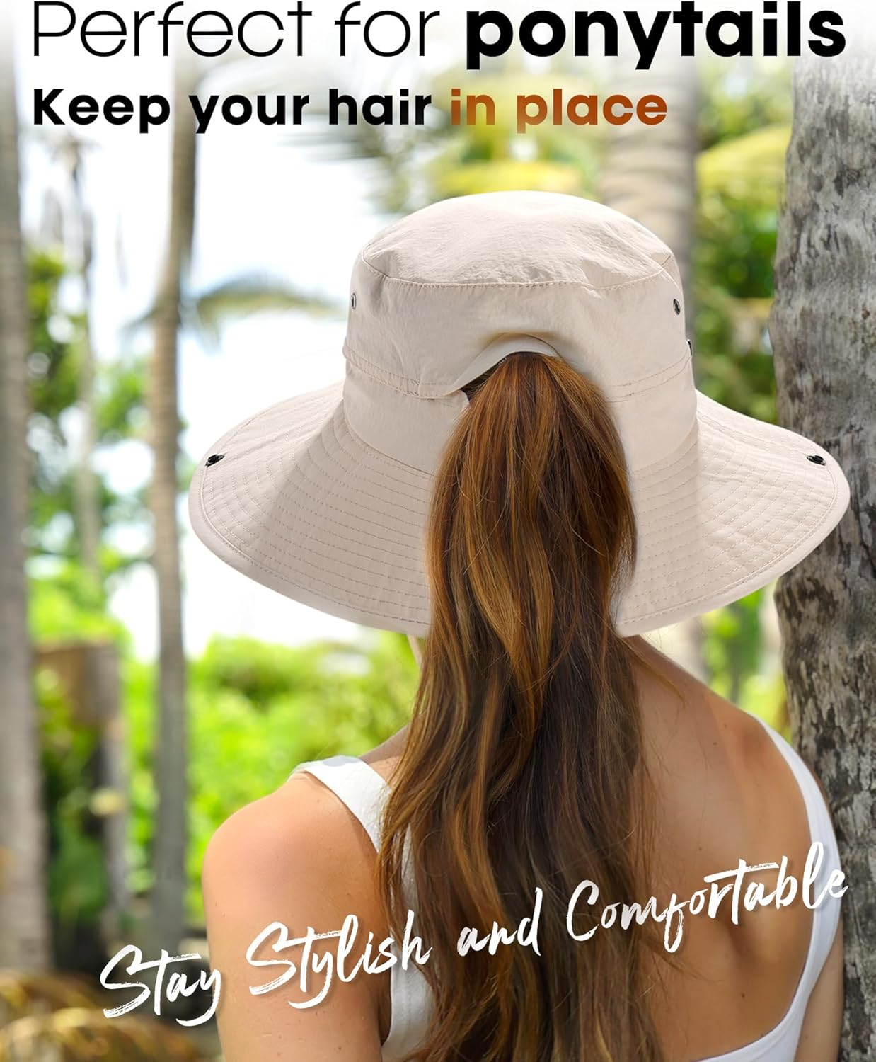 FURTALK Sun Hats for Women Ponytail UPF 50+ Beach Summer Hat Wide Brim Packable Cowboy Hat