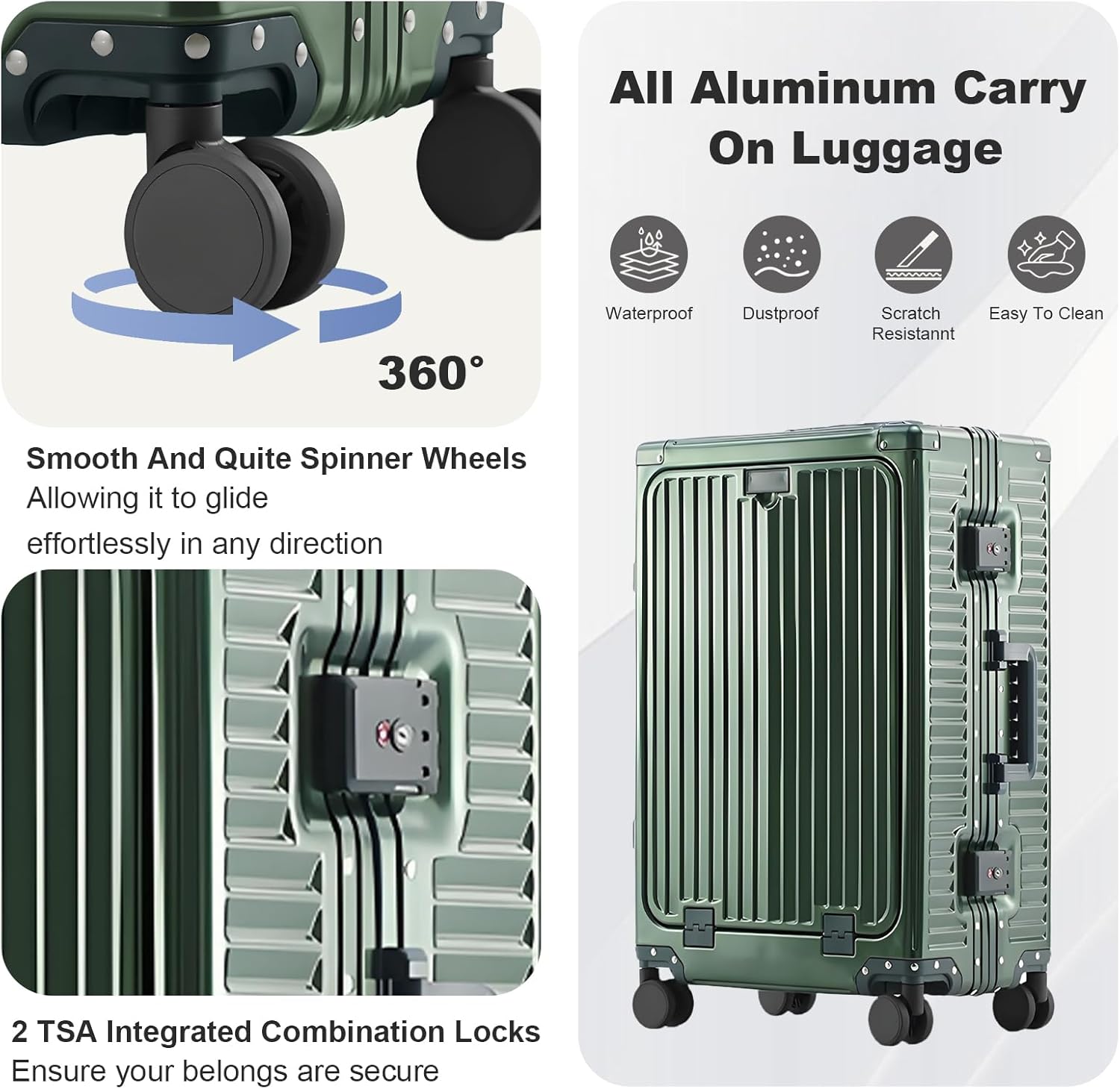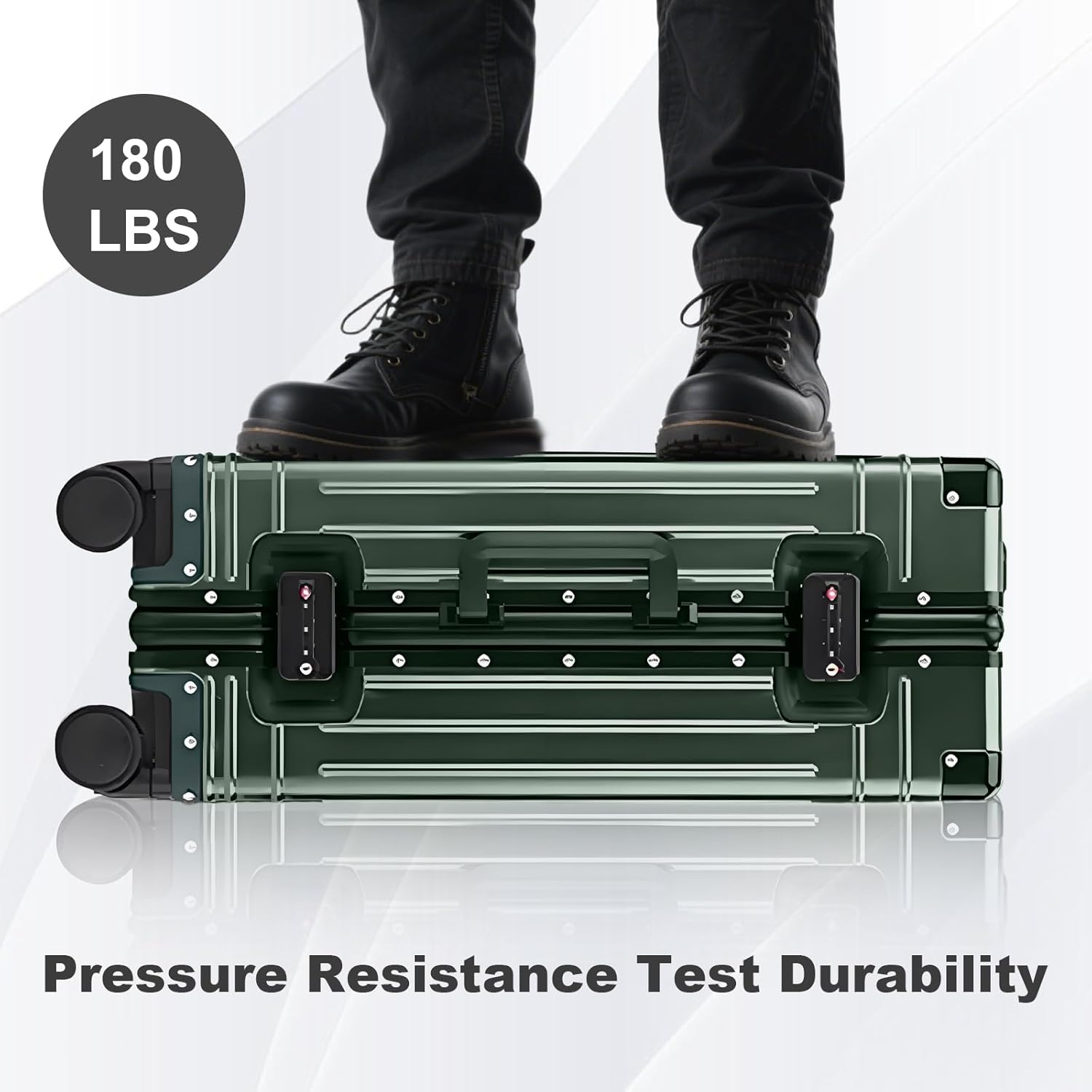 【Full Aluminium-Magnesium Alloy】The surface of this suitcase is made of the whole piece of all-aluminum plate, alloy corner reinforcement at the corners,make the appearance harder,and the color brighter.No need to worry about bumping during the journey, it’s the ideal companion for a hassle-free trip.