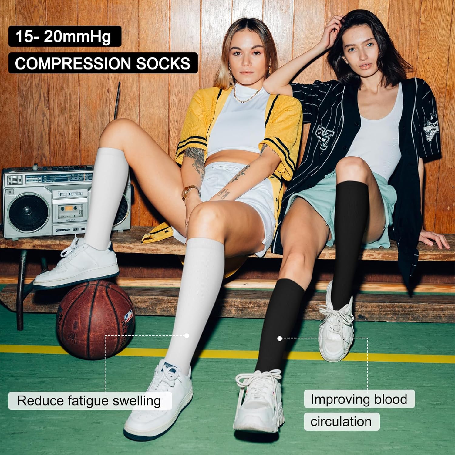 COMPRESSION SOCKS FOR WOMEN- Our compression socks are different from traditional compression socks because we adhere to the highest standards of producing professional athletic socks. Our compression socks have a mild level of graduated compression,they provide relief for anyone experiencing tired,achy legs or mild swelling and enhance blood circulation for faster recovery, relieve varicose veins.Provides better protection for your feet.