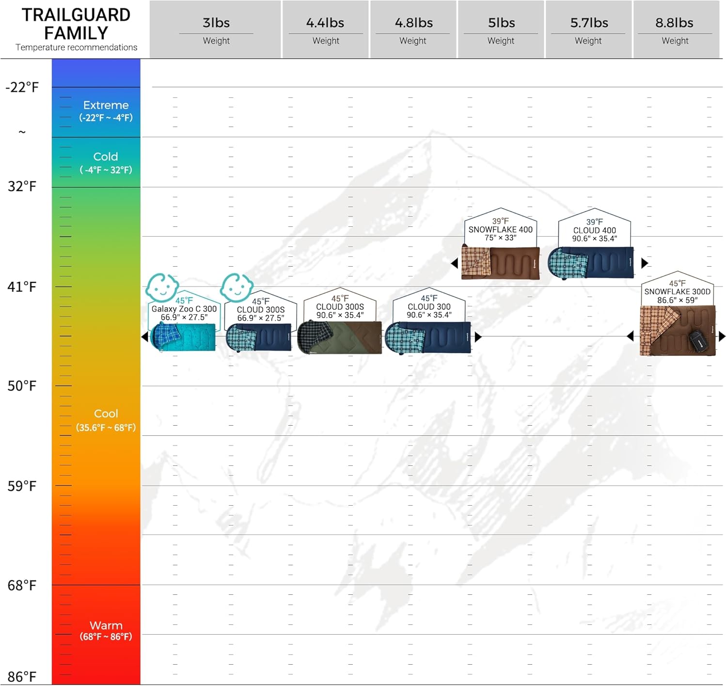 FOR COLD CLIMATE CONDITIONS: Perfect for temperatures of 32℉ and above, this double sleeping bag keeps you warm on chilly nights. Its spacious design makes it a favorite for family camping, backpacking, or couples. Whether you’re car camping or hiking, our sleeping bag for two provides the warmth and space you need for a restful sleep outdoors.