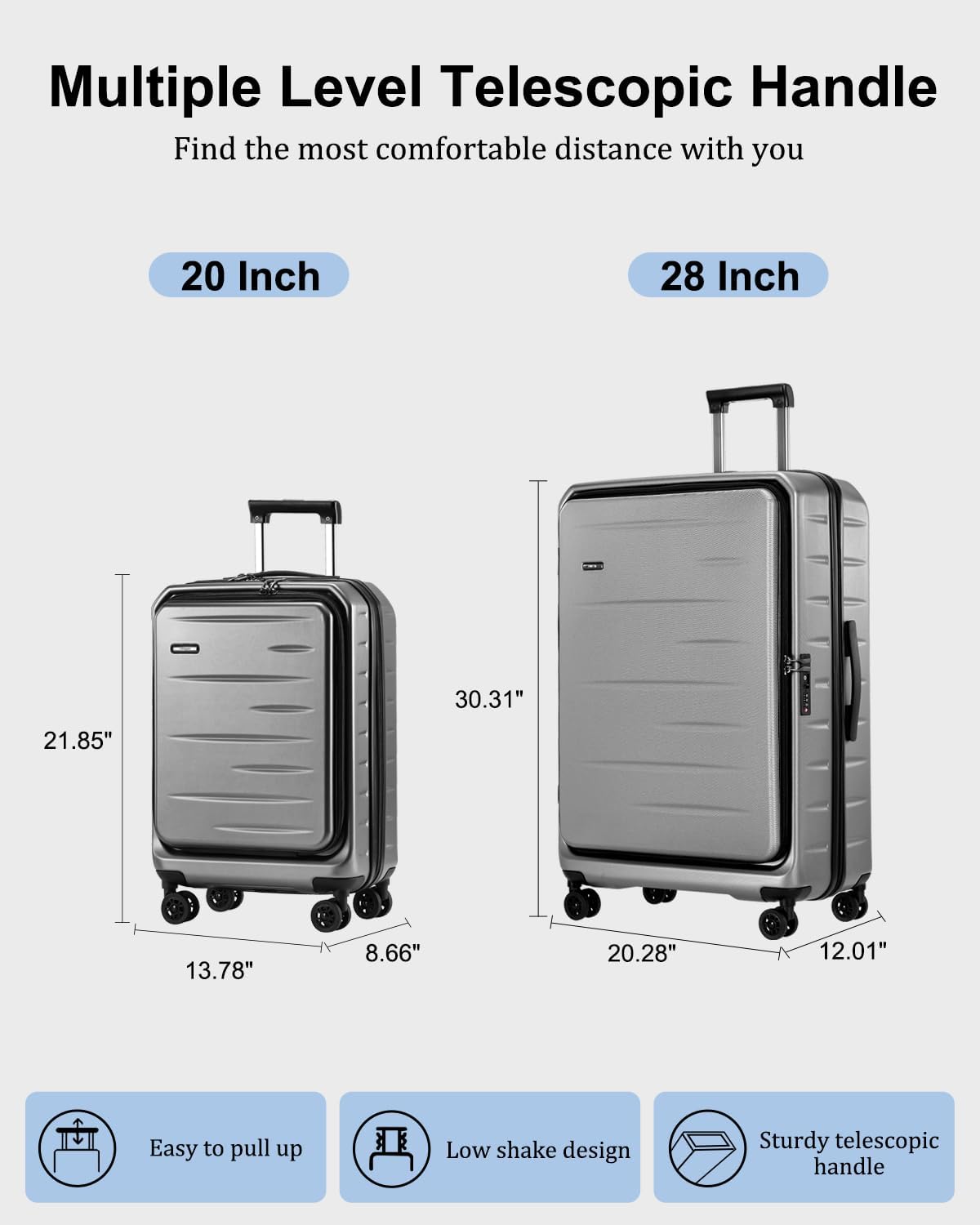 More Packing Options: Extra large 28” checked luggage with 20% expandable design (Only 28”), allowing additional packing space; 20” carry on luggage complies with 22x14x9 airline-approved regulations, 20” luggage non-expandable