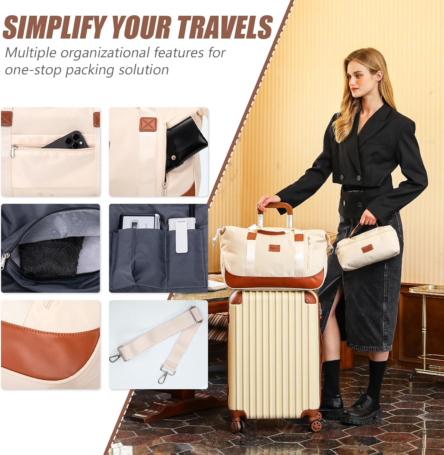 【5 Piece Luggage Set】Luggage sets include a 28-inch large suitcase, 24-inch medium checked luggage, 20-inch carry on luggage, an extended duffel bag, and a toiletry bag. Both the duffel bag and toiletry bag are made from mild, water-resistant polyester fabric. The duffel bag features a back sleeve so you can conveniently attach it to the retractable luggage handle. It is equipped with multiple functional pockets to meet different travel needs.