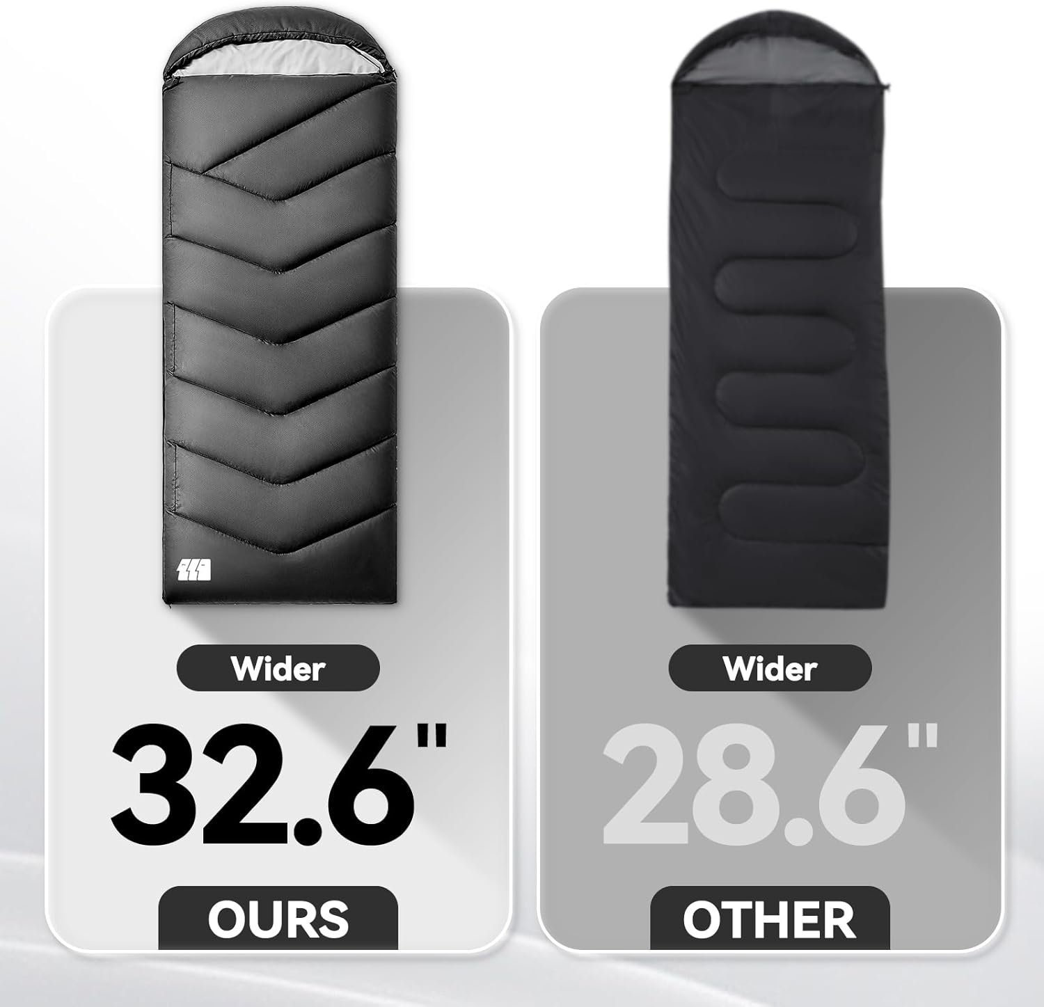 【Advanced Warmth & Zipper Protection】Crafted with high quality material and anti-cold zipper guard, these sleeping bags for adults lock in heat for camping or chilly nights at summer camps. The hoodie-style adjustable hood with an elastic draw string ensures warmth during use.