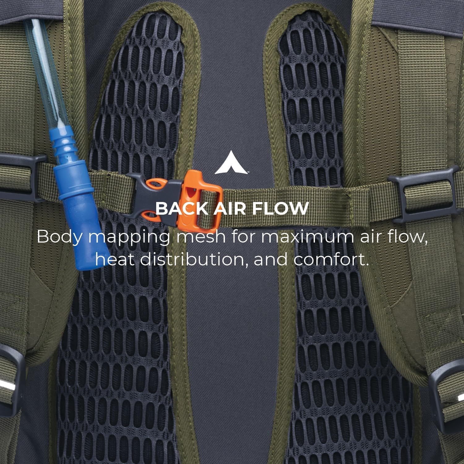 STAY HYDRATED ON THE GO: Lightweight hydration backpack with 2L water bladder keeps you refreshed while hiking, running, cycling, or biking. Insulated bladder pocket helps keep water cold for hours. 18L/22L of organized storage.